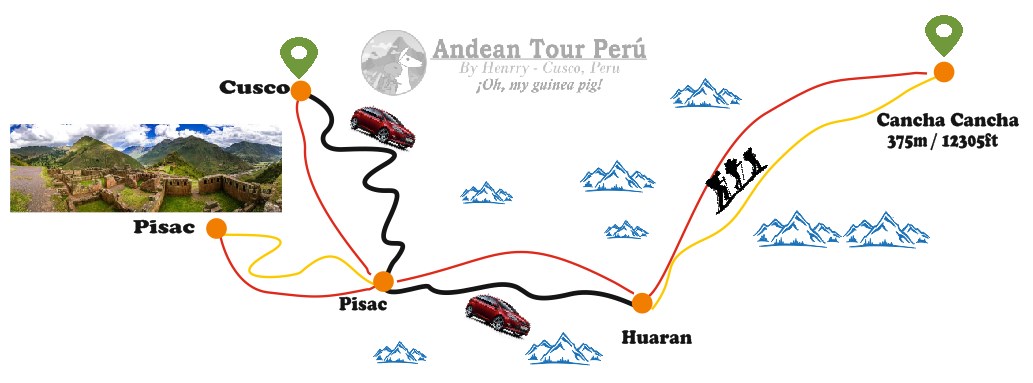 - Private transportation from the hotel to Pisac Inca ruins and then Huaran (Trailhead)